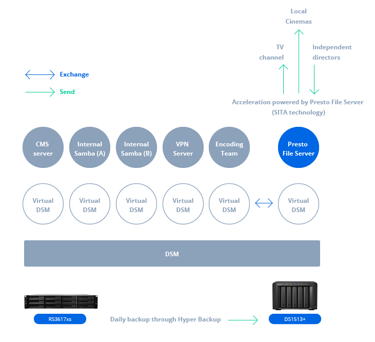 Presto File Server 提供的穩(wěn)定高速傳輸功能滿足我們的需求,它已經(jīng)取代了我們以前的傳輸工具。憑借其在 VDSM 部署和 Btrfs 文件系統(tǒng)支持方面的靈活性,現(xiàn)在我們能夠以高效存儲的方式將所有服務整合到一臺服務器中?;蛟S可以說,這是真正的一體化解決方案。