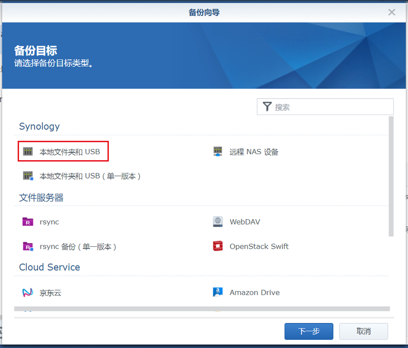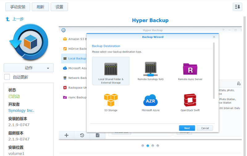 備份目的地可以是本地共享文件夾、外部設(shè)備、另一個 Synology NAS、rsync 服務(wù)器,或者公共云服務(wù),如 Google Drive、Amazon Drive、Dropbox、Microsoft Azure、S3 兼容存儲以及專屬 Synology 用戶使用的云備份服務(wù) Synology C2。