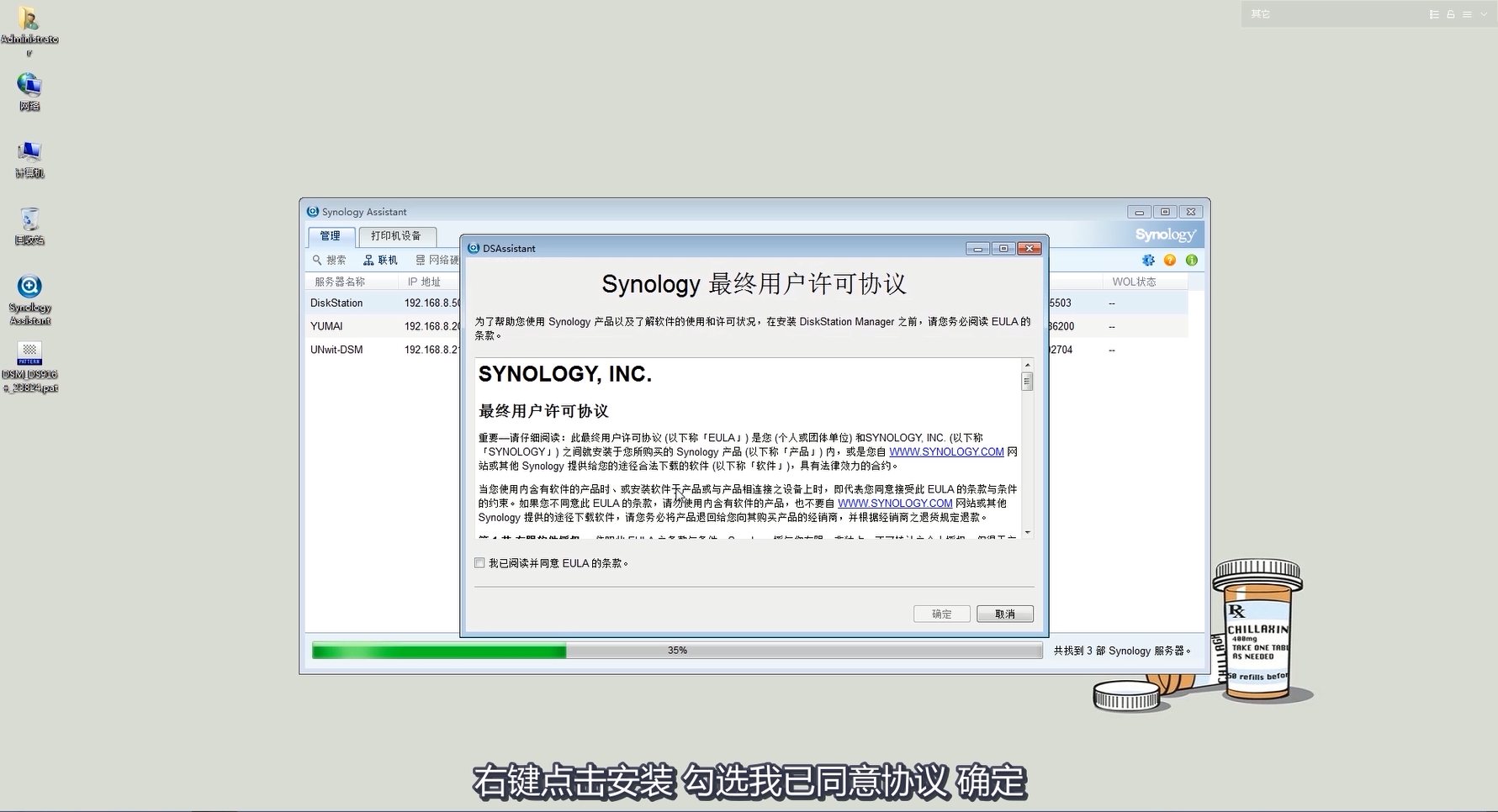 然后按照流程點(diǎn)擊同意 Synology 最終用戶許可協(xié)議