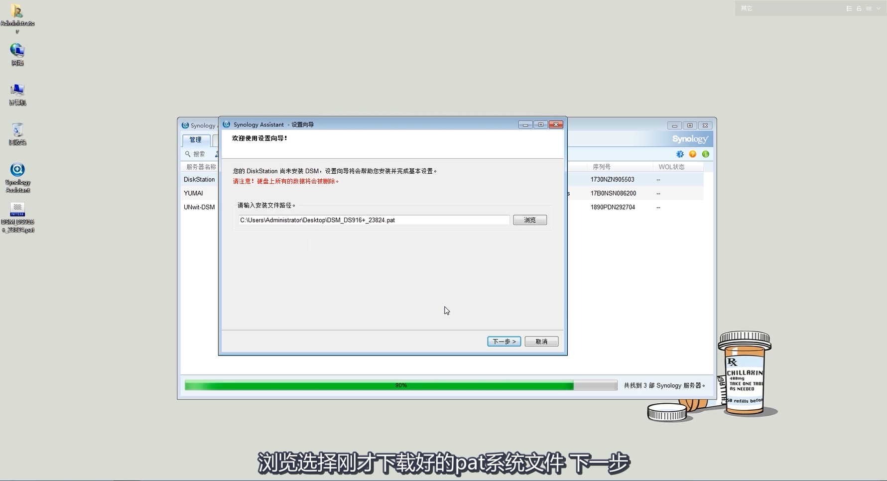選擇你的機(jī)器的型號,然后下載 pat 文件和安裝助手Synology Assistant