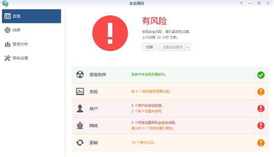 開啟安全顧問:可以查看系統(tǒng)中出現(xiàn)的安全隱患